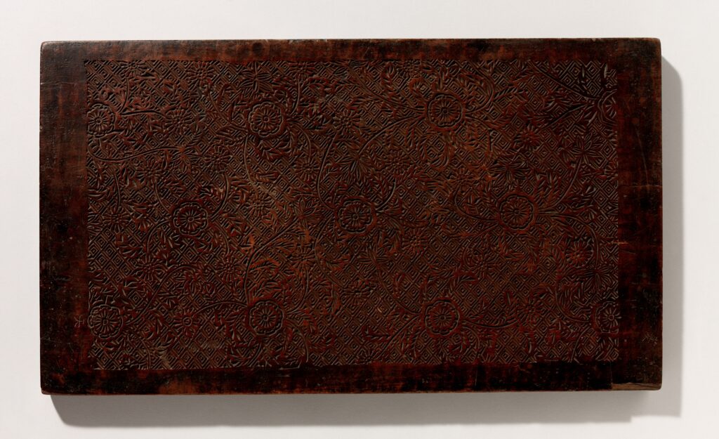 그러나 이 벽지가 한국인들에게 그토록 친숙하게 다가갈 수 있었던 결정적인 이유는, 우리 내부에 이미 존재했던 ‘능화판(菱花板)’이나 섬세하고 기하학적인 패턴들을 다루었던 조선시대 디자인 유전자 덕분일 것입니다. 조선 시대 책표지나 벽면을 장식하던 능화판의 마름모꼴 문양은 이 띠벽지의 조형 언어와 상당히 유사합니다. 당시 한국의 기술자들은 일제가 남긴 낡은 롤러의 도안(서양-일본식 사라사)을 기반으로 작업하면서도, 그 내부를 채우는 필치와 리듬에 조선 민중에게 익숙했던 능화문의 감각을 투영했으리라 추정해볼 수 있을것입니다.
