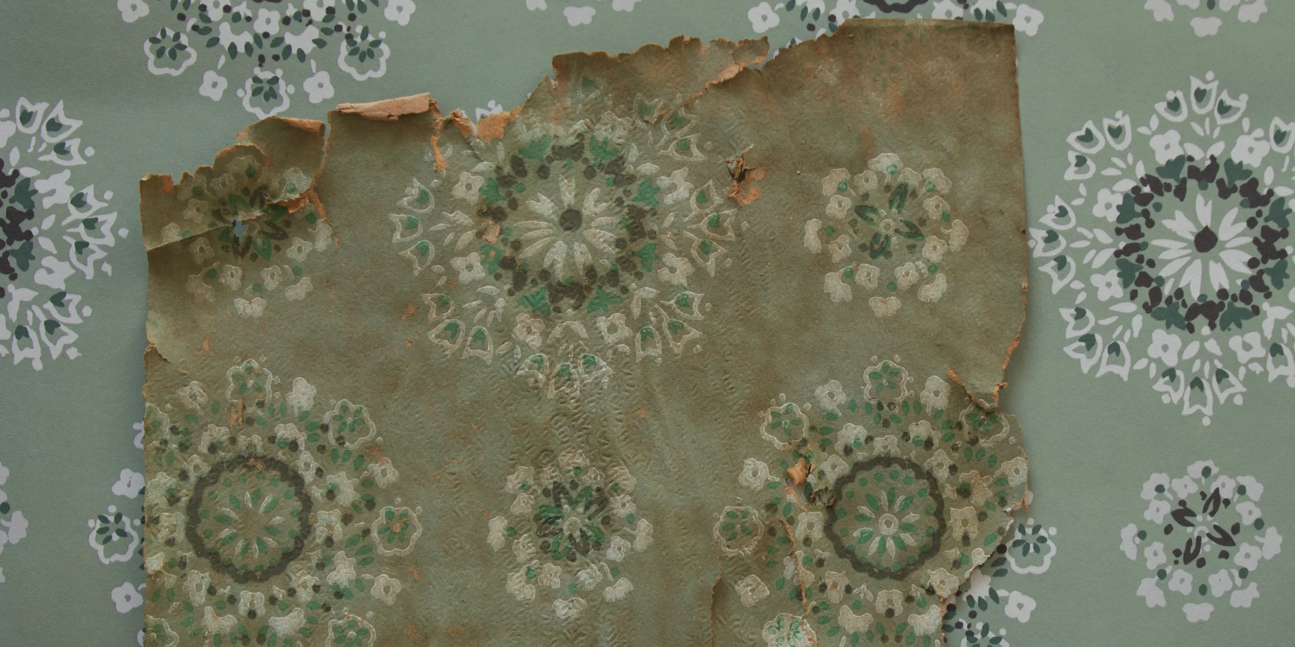 한국의 생산자는 이 세계적인 유행 패턴을 가져오되, 색채를 통해 이를 한국의 주거 환경에 맞게 조율했습니다. 당시 서구의 미드센추리 패턴들이 오렌지, 옐로우 등 고채도의 ‘팝(Pop) 컬러’를 적극적으로 사용했던 것과 달리, 이 벽지는 민트색과 차분한 쑥색(녹·먹색)을 주조색으로 선택했습니다. 이는 나무 기둥과 황토색 장판이 주를 이루는 한옥의 온돌방에서 벽지가 너무 튀지 않고 은은하게 어우러지도록 하기 위한 전략적 선택이었습니다. 서양의 도안을 그대로 가져오면서도, 색감을 한 톤 낮추고 엠보싱 질감을 더해 한국적 정서에 부합하는 ‘차분한 모던함’을 만들어낸 것입니다.